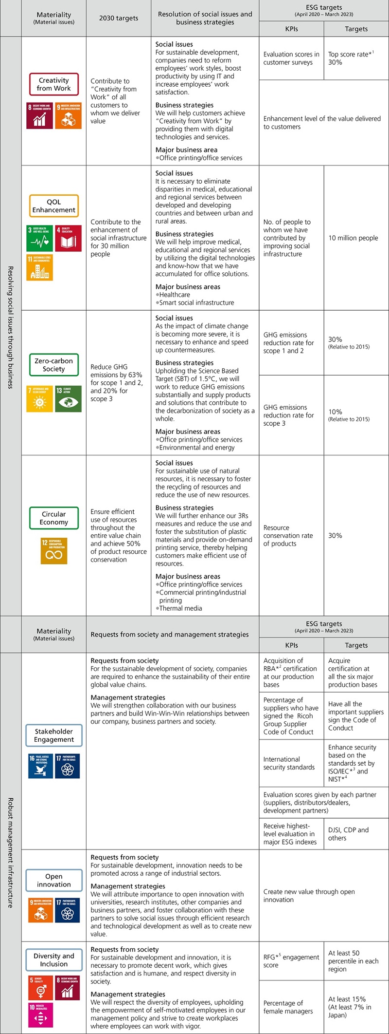Ricoh’s Approach to Seven Material Issues and ESG Targets